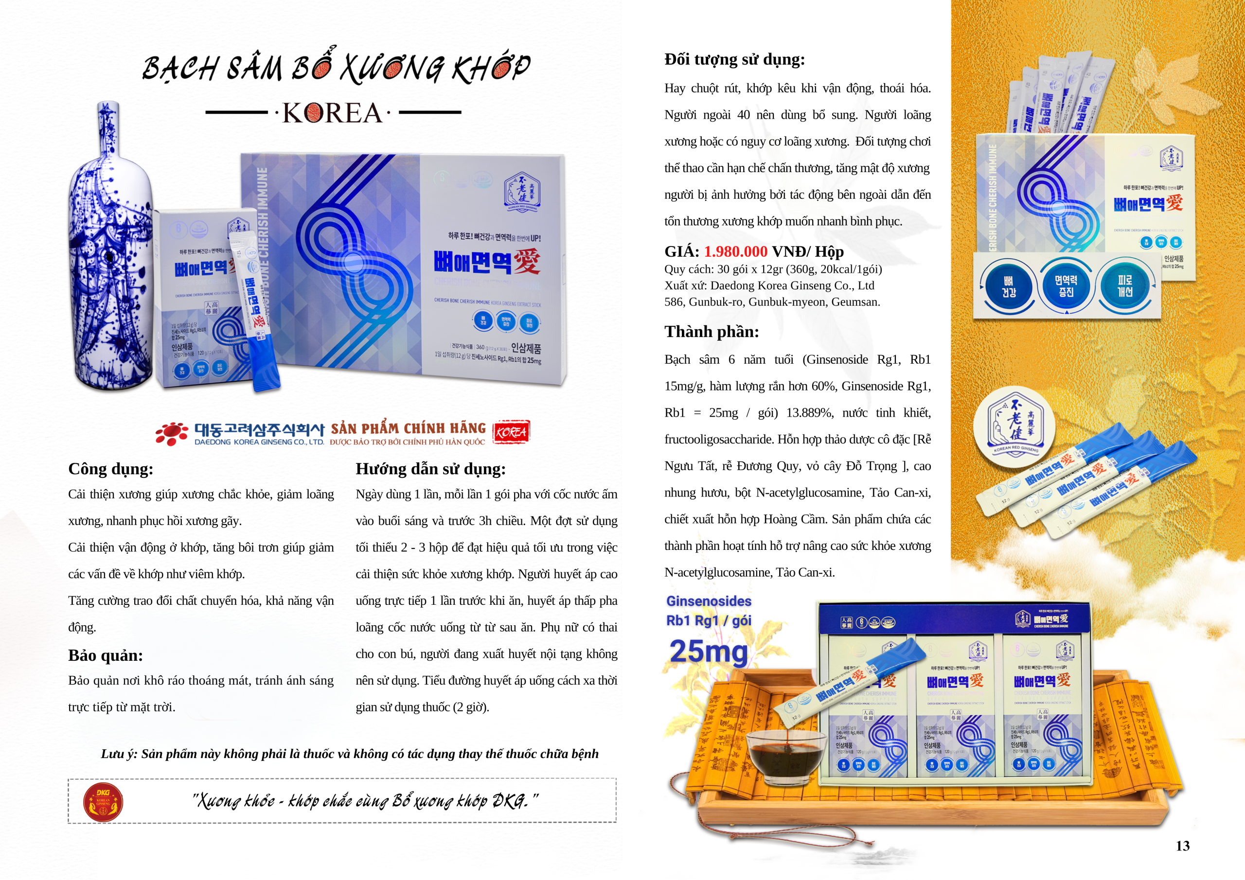 Bạch Sâm Bổ Xương Khớp – Hộp 30 gói x 12gr