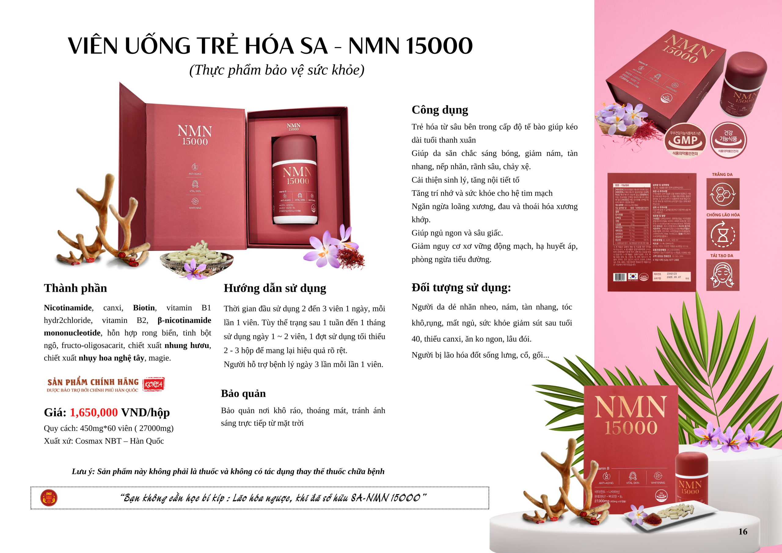 Viên Uống Trẻ Hoá Sa – NMN 15000 – Hộp 60 viên x 450mg