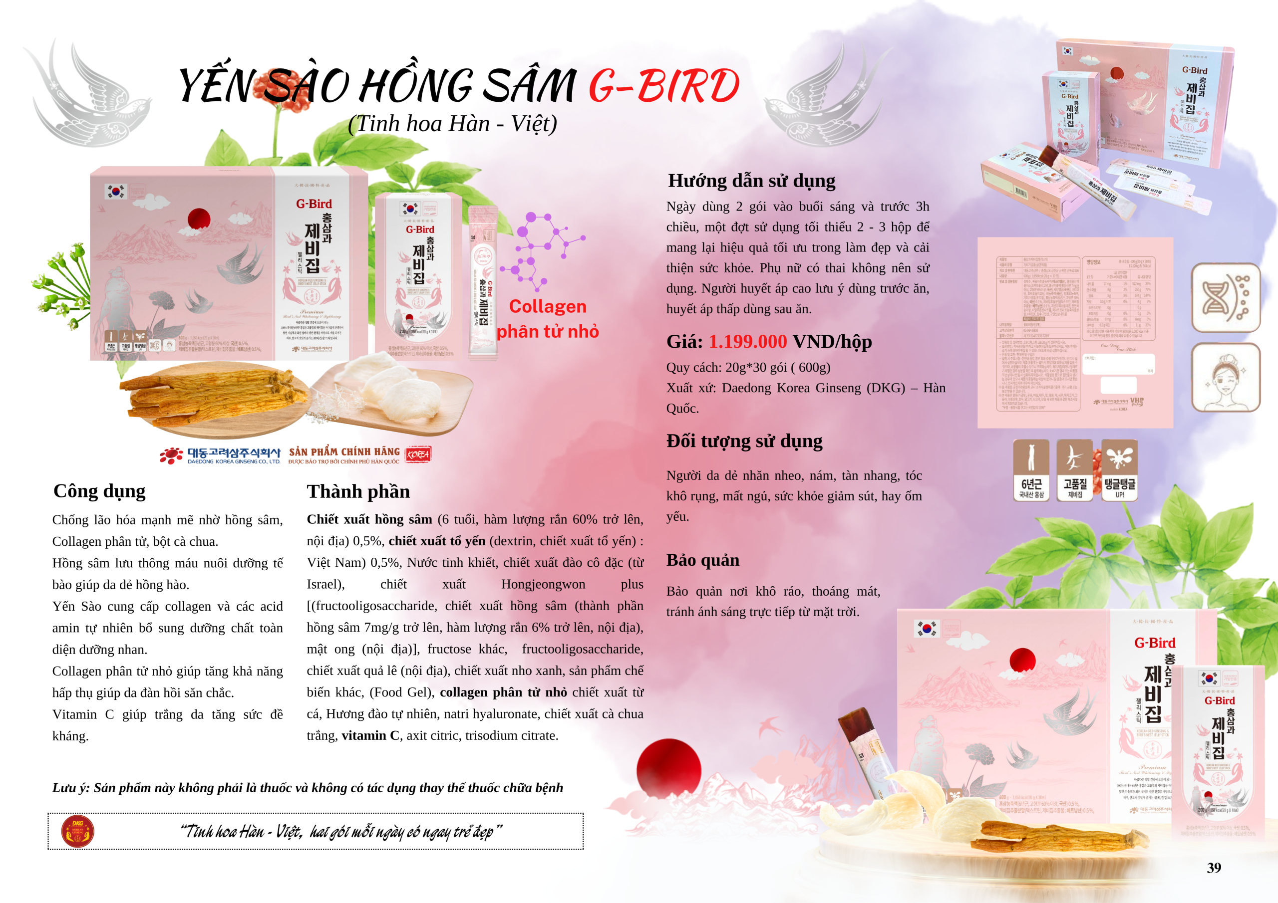 Yến Sào Hồng Sâm G-BIRD – Hộp 30 gói x 70ml